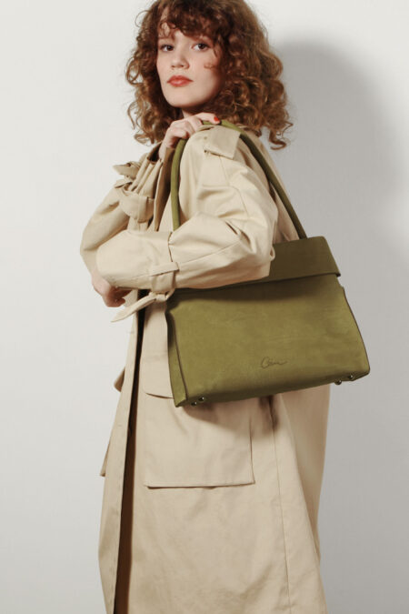 835.00 € TTC (695.83 € excl tax)Ema notre petite sacoche urbaine au carénage vintage se porte épaule ou bandoulière. Les lignes plongeantes de son rabat enveloppant maintenu d’une large patte de cuir boutonnée donne aérodynamisme à ce mini bolide structuré. Sa finition sellier simplement ornée de deux arceaux de métal lui apporte son authenticité minimale.